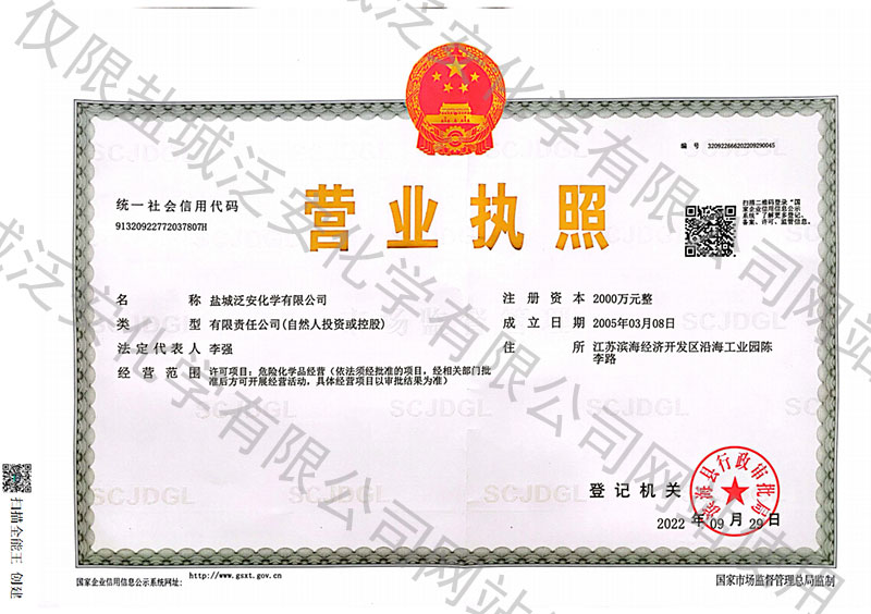 鹽城泛安化學有限公司成立于 2005 年 3 月,是一家專業的分子篩模板劑供應商和技術服務商。主要產品包括四乙基氫氧化銨、 N,N,N-三甲基-1-金剛烷基氫氧化銨、四丙基氫氧化銨、四丁基氫氧化銨、各類新型模板劑、 特種精細化學品等。主要客戶集中 在煤化工 MTO(甲醇制烯烴)催化劑、環保工業領域的汽車尾氣凈化催化劑等領域...
